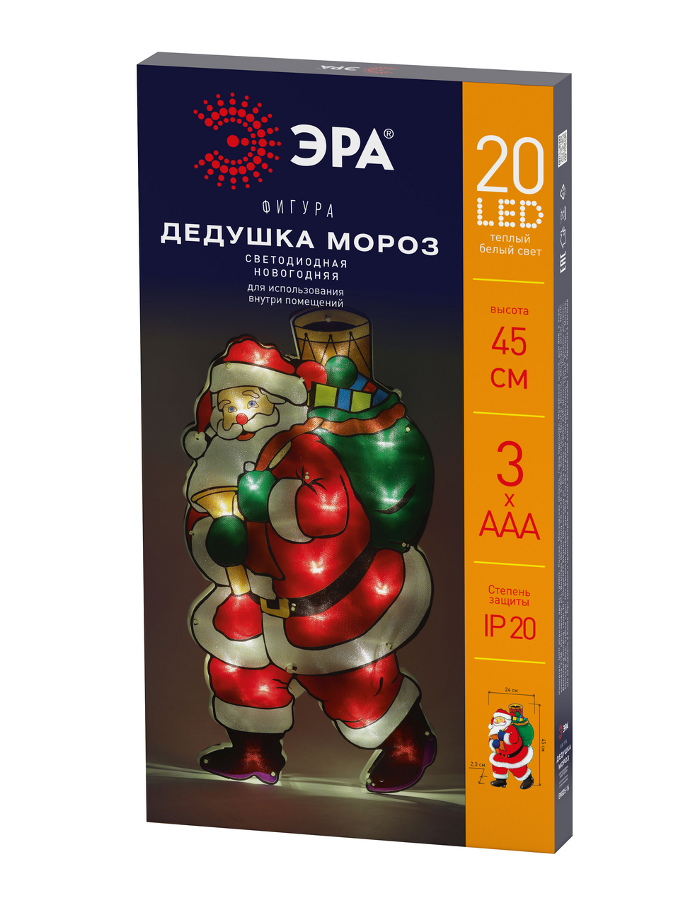 Фигура Эра Дед Мороз 20Led теплый белый, 45см