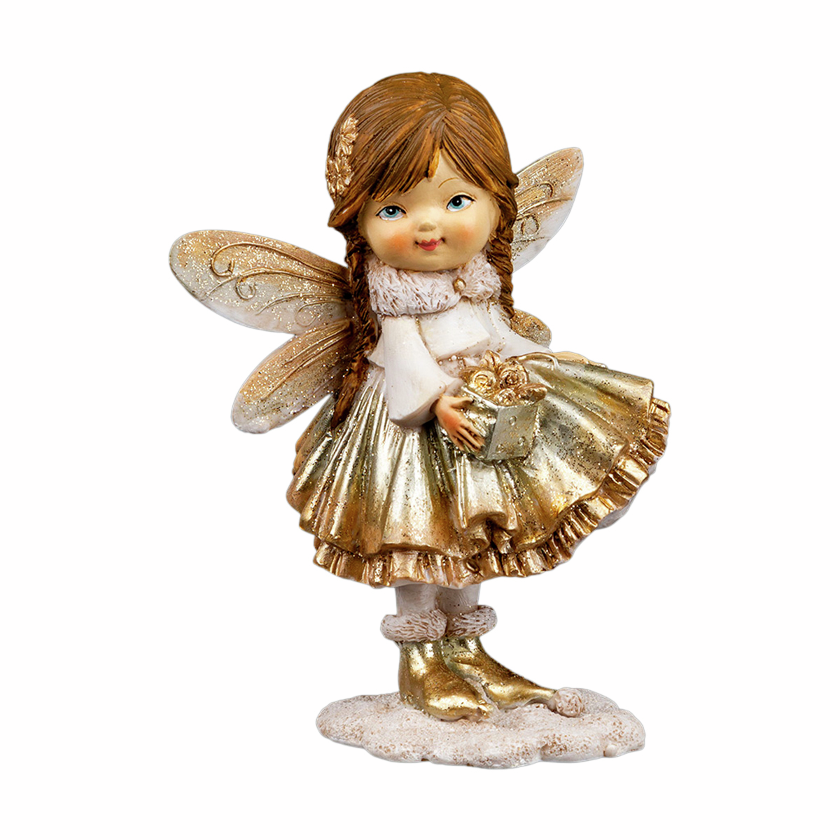 Очаровательная фея выполнена в пастельных оттенках. Тонко прорисованные детали подчеркнуты золотой краской и сверкающими блестками. Милый сувенир отлично впишется в любой интерьер и поможет создать атмосферу волшебства и уюта. Групповая упаковка предназначена только для безопасной транспортировки и хранения.