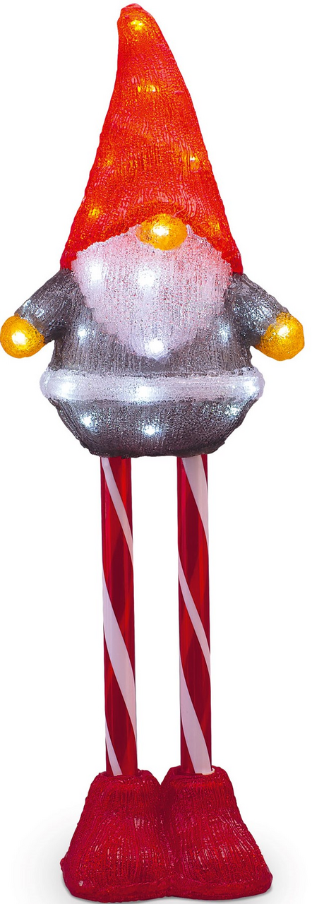 Акриловая светодиодная фигура Гном с длинными ногами из 40 холодных белых светодиодов, таймер на 6 часов, для использования снаружи и внутри помещений. Работа от сети. Можно поставить гнома под елку, а можно разместить его на полке.