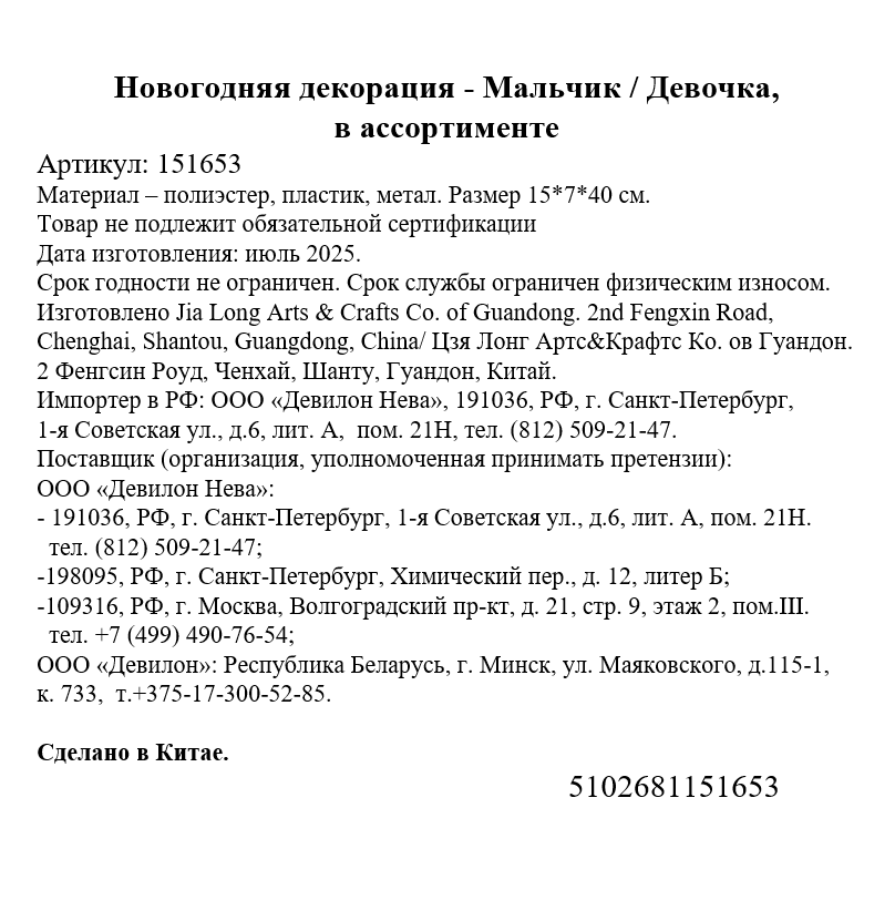 Фигура в красной одежде в ассортименте, 15 x 7 x 40см - новогодняя фигурка подходит для создания праздничных композиций, оформления фотозон и размещения под елкой. Отлично смотрится в соседстве с другими новогодними персонажами. Может стать отличным подарком к Новому году для ребенка и взрослого.