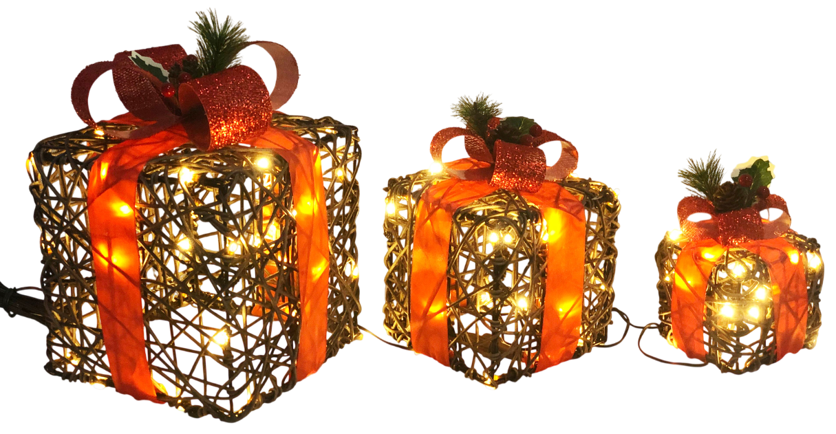 Объемные светодиодные фигуры "Подарки" - прекрасное украшения для дома в Новогодние праздники. Может радовать не только Вас, но и прекрасно подходит на подарок! Будет отлично смотреться под елкой, а также на столе, полке или тумбочке. Конструкция работает от сети 220V.