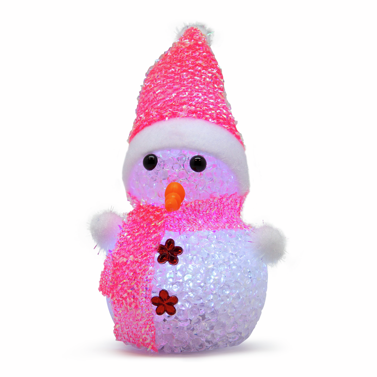 Светодиодная фигура Снеговик, 2 RGB светодиода, 3 режима работы, для использования внутри помещений. Работает от батареек, входят в комплект. Изделие станет эффектным дополнением к гирлянде или даже оригинальной заменой ей. Игрушка ярко светится, потребляет совсем мало энергии и не нагревается.