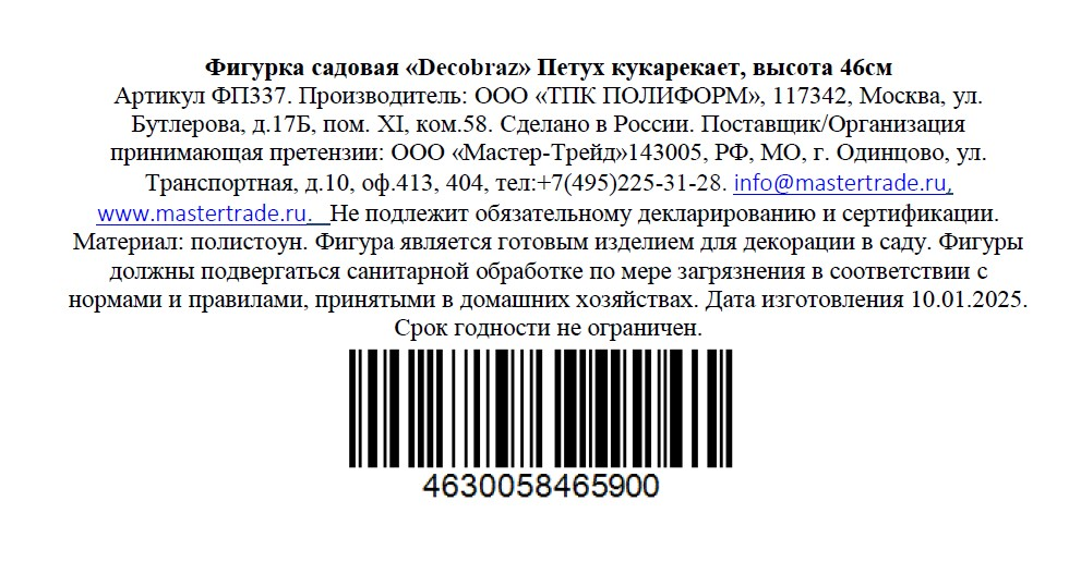 Фигурка Decobraz петух, 46 x 20 x 38см