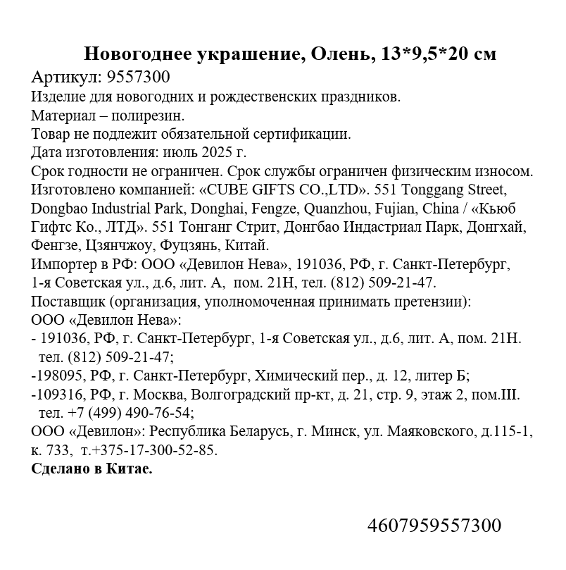 Фигурка олень, 13.9 x 9.5 x 20см - новогоднее украшение, Олень. Замечательная керамическая фигурка веселого Оленя для новогоднего и рождественского оформления. Может уютно расположиться на комоде, украсить новогодний стол или стать дополнением к подарку друзьям и близким.