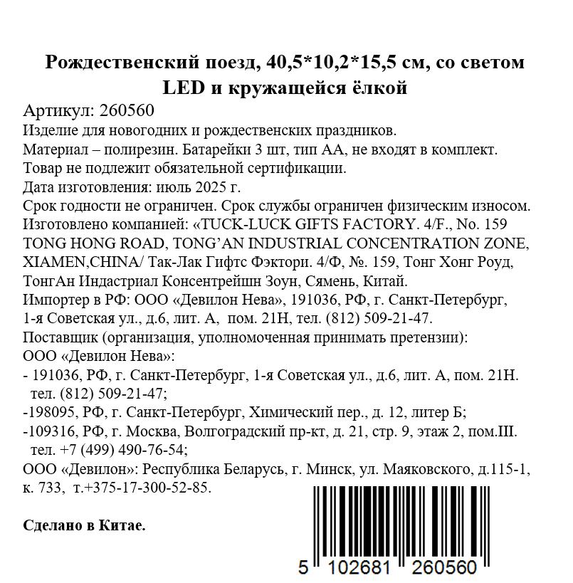 Фигурка Рождественский поезд Led, 40.5 x 10.2 x 15.5см