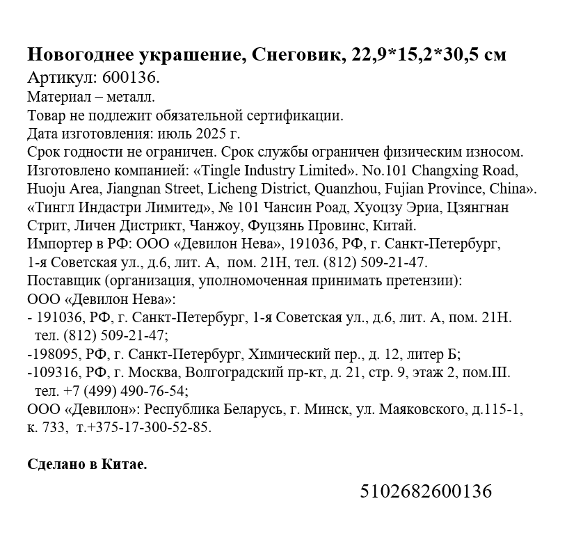 Фигурка Сн��говик, 22.9 x 15.2 x 30.5см - новогодний сувенир изготовлен из материалов Premium премиум качества (фетр, флис, мех, декорирован пуговицей). Можно поставить возле искусственной елки, украсить гирляндой или светодиодной лентой, повесить гирлянды шторы, наклейки на окна, запастись новогодними хлопушками.