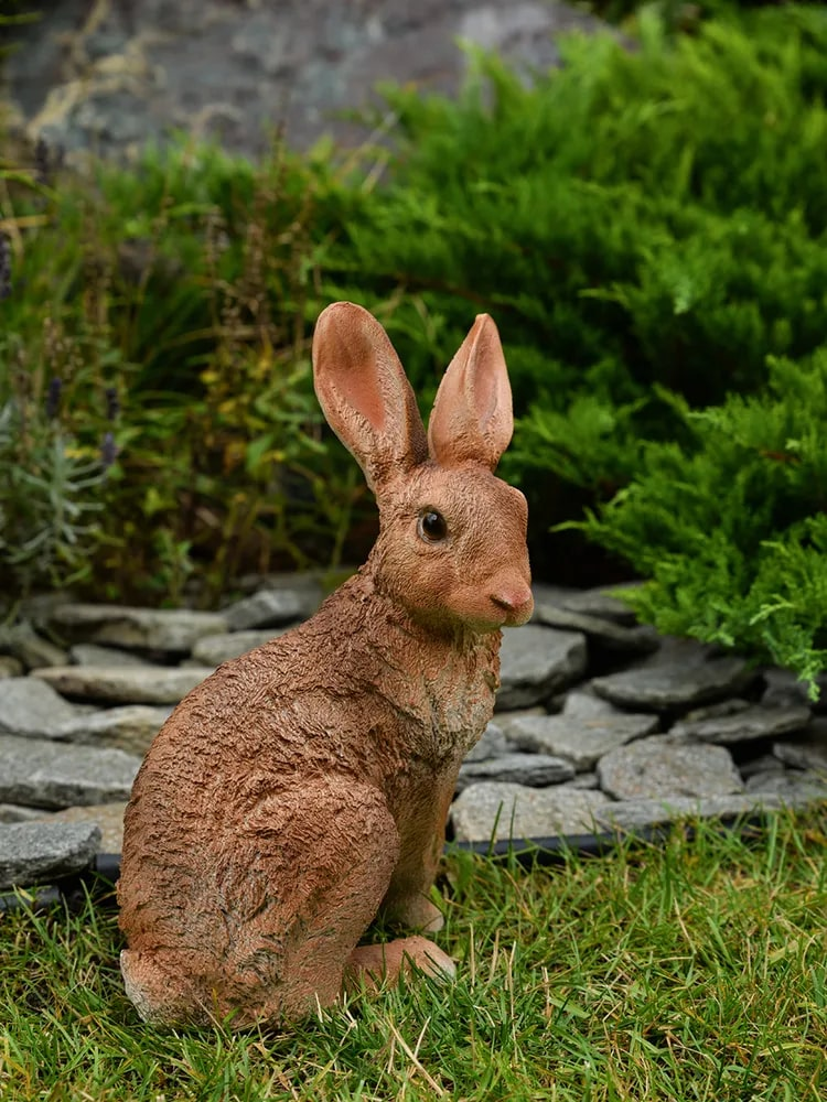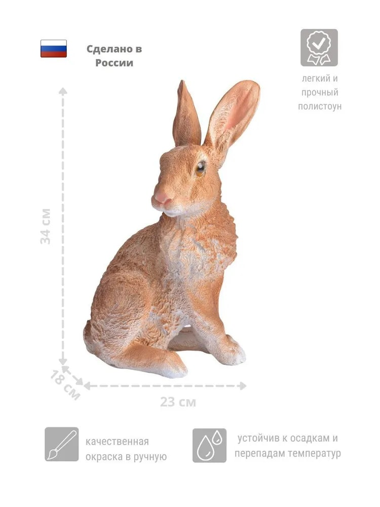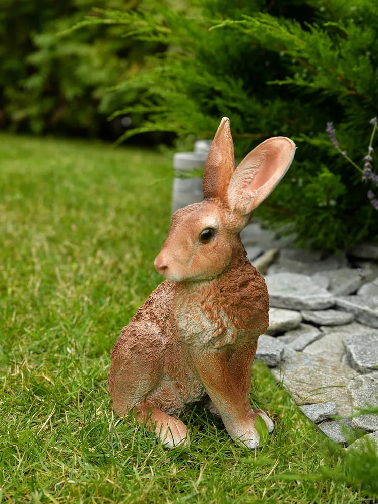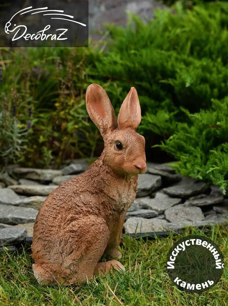 Декоративная статуэтка зайца, выполненная из искусственного камня - полистоуна. Такая статуэтка отлично впишется в Ваш интерьер в качестве декоративного элемента. Садовая фигура из полистоуна легко переносит любые атмосферные воздействия в виде дождя, града, снега, температуру широкого диапазона: от -50 до +180 градусов, не реагирует на высокую или низкую влажность, устойчива к солнечному излучению. К несомненным достоинствам полистоуна можно отнести его экологическую безопасность. Садовая скульптура подходит как для размещения на открытом воздухе, так и в помещении. Садовую декоративную фигуру можно использовать как декор для вашего сада и огорода, как дополнение любых декораций, а может выступать и в качестве подарка.