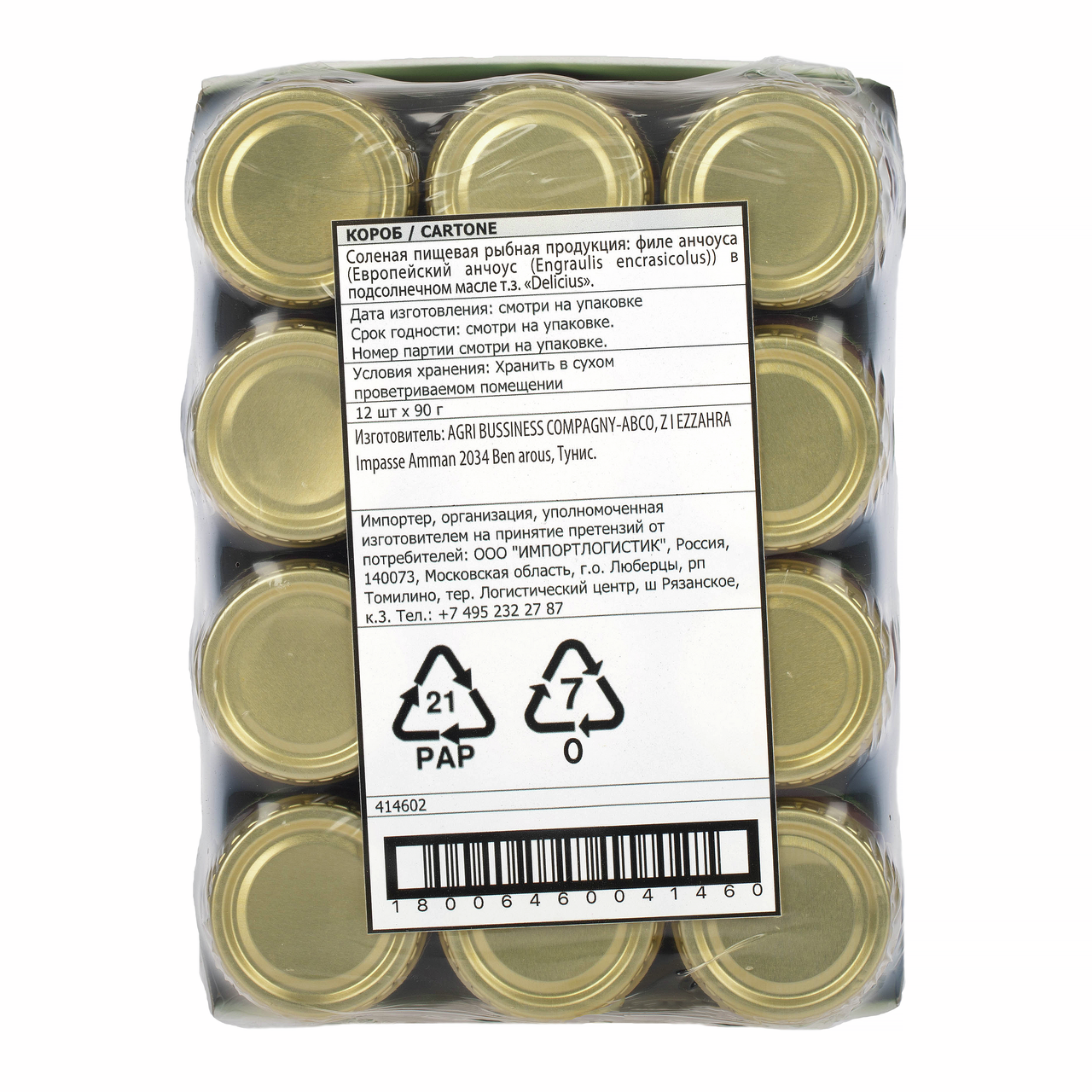 Анчоусы Delicius филе в подсолнечном масле, 90г