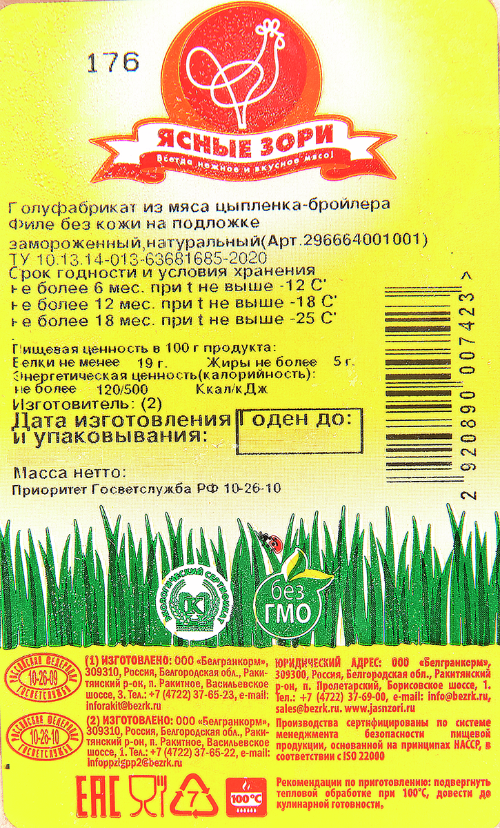 Филе цыпленка-бройлера Ясные зори без кожи замороженное, ~900г