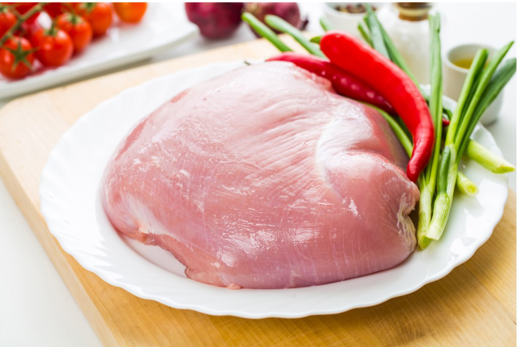 Мясо цыпленка индейки. Полуфабрикаты натуральные из мяса птицы. Пищевая ценность в 100г продукта: белок 20,7г, жир 2,5г. Энергетическая ценность 105 ккал/438,9кДж. Хранить 10 суток при температуре от 0 до +2'С с относительной влажности воздуха не более 855%.