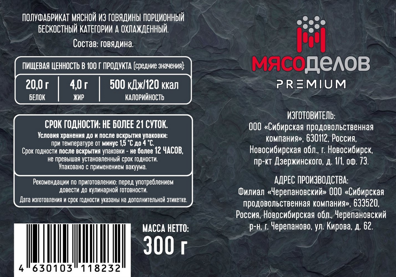 - Тип упаковки Вакуумная упаковка