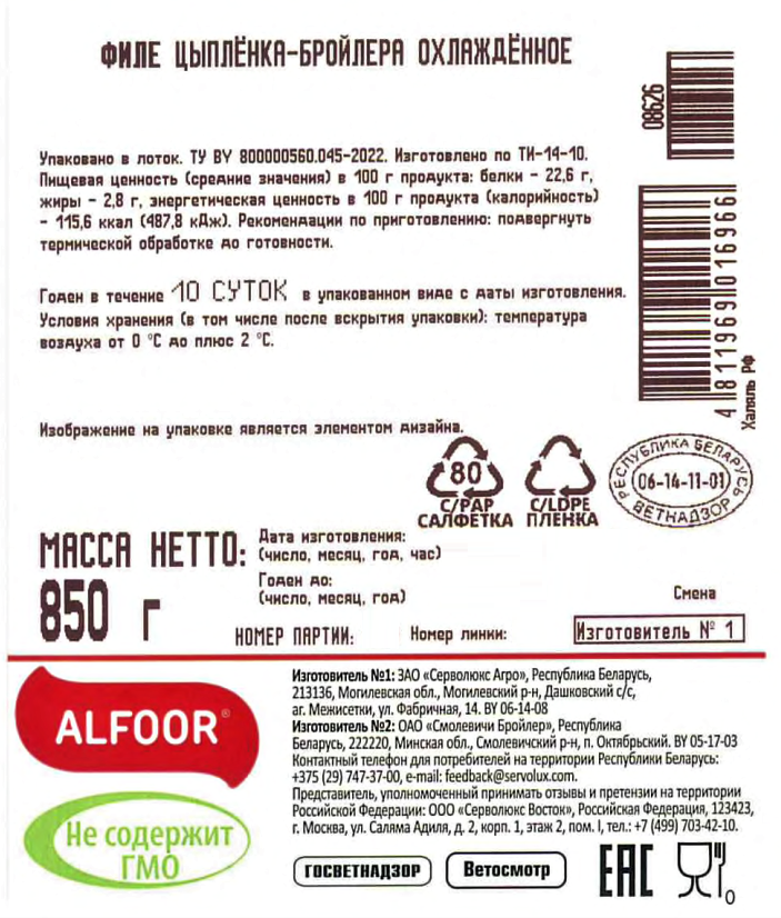 Филе цыпленка-бройлера Alfoor Халяль охлажденное, 850г
