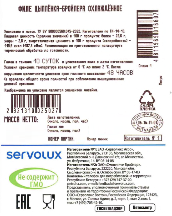 Филе цыпленка-бройлера Servolux Professional охлажденное, ~10кг