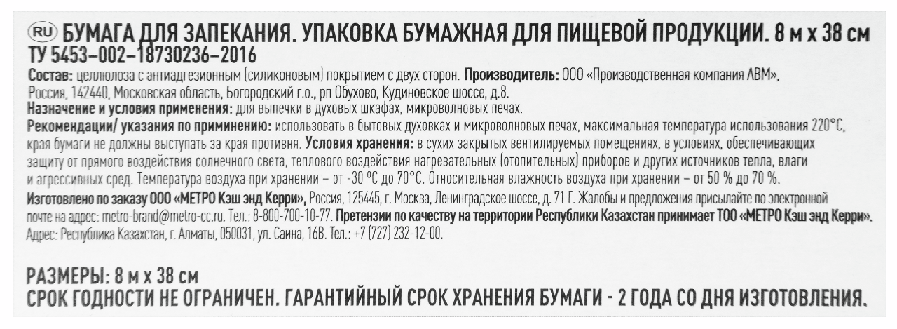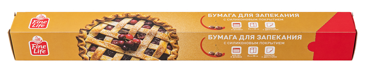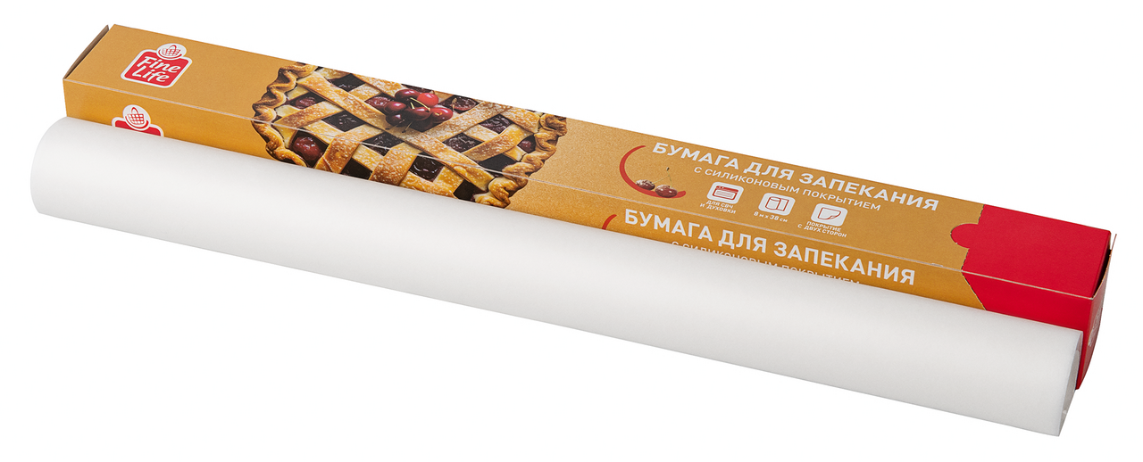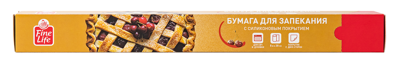 Fine Life Бумага для запекания 8м x 38см с двусторонним силиконовым покрытием - идеальный помощник на вашей кухне! Силиконизированное покрытие с двух сторон предотвращает прилипание даже самых капризных продуктов, сохраняет сочность и аромат, а также экономит время на уборку. Подходит для приготовления пирогов и печенья, запекания мяса, рыбы, овощей в духовой и СВЧ-печах. Рекомендуется использовать при температуре до 220С.