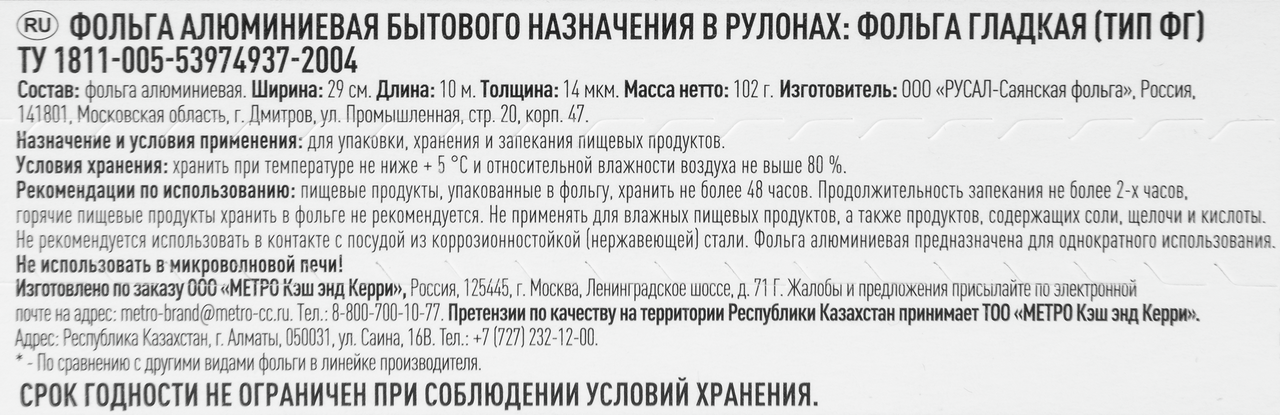 - Комплектация Фольга - 1 шт.