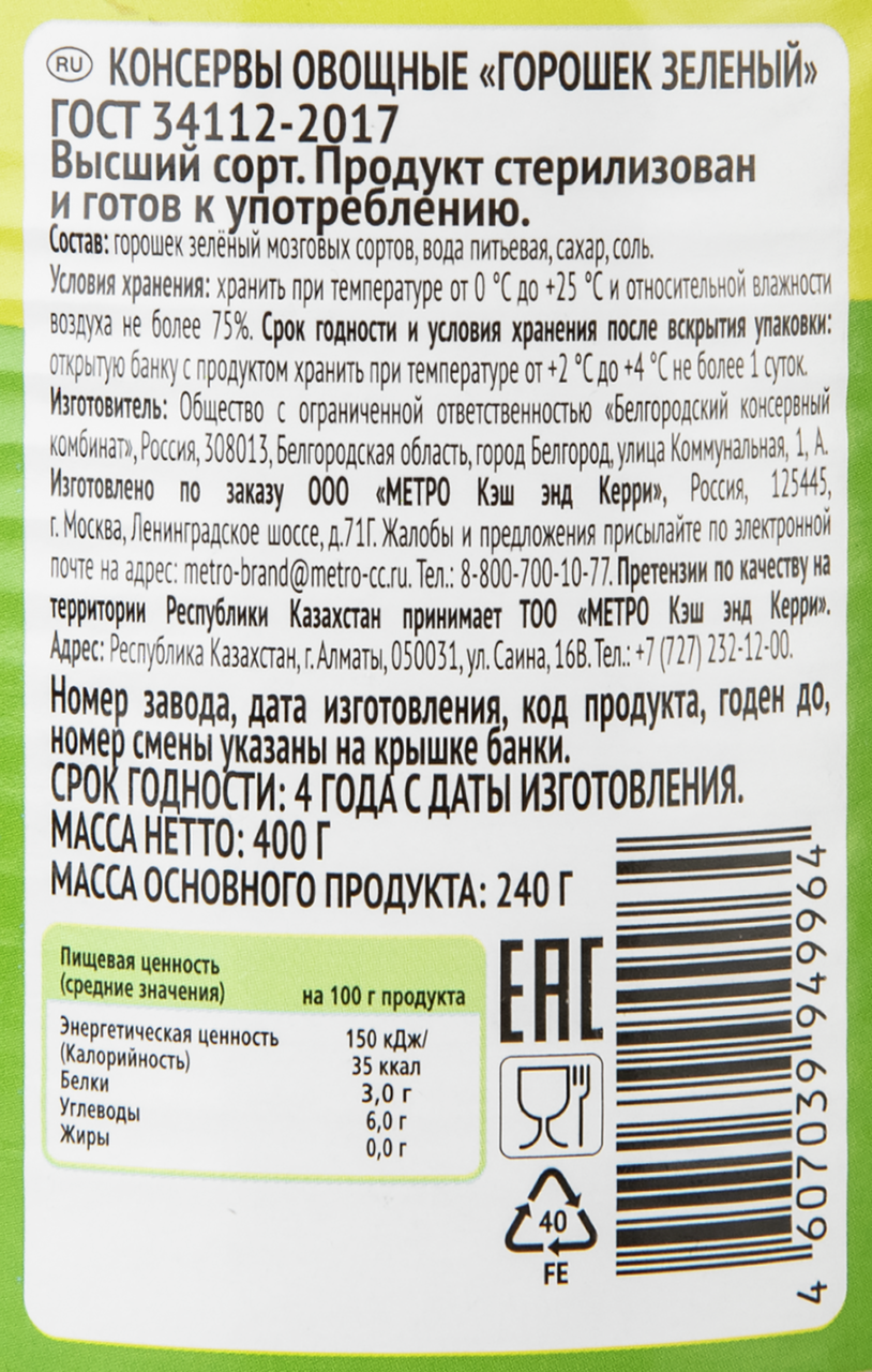 Горошек консервированный Fine Life отличается приятным вкусом и сохраняет свою форму даже после длительного хранения. Идеален для добавления в блюда русской кухни: овощные салаты, рагу, гарниры и супы.