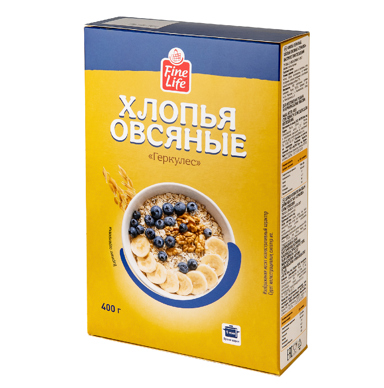 Fine Life Хлопья овсяные быстрого приготовления геркулес, 400г