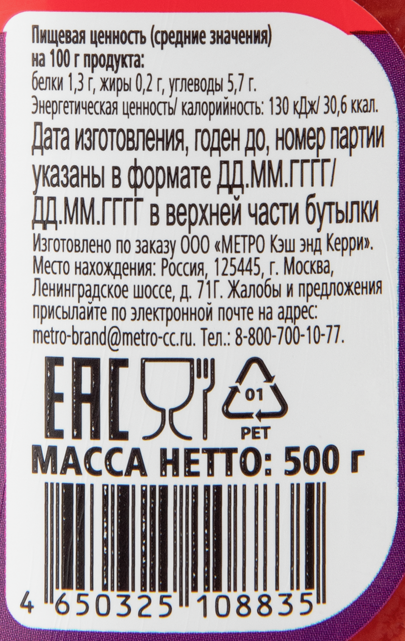 Томаты, соль пищевая, хрен сушеный, чеснок сушеный, сахар, регулятор кислотности уксусная кислота, сорбат калия.