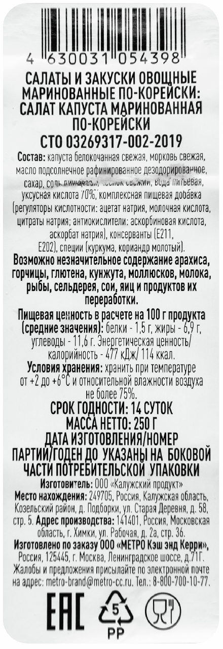 Капуста маринованная по-корейски 250г - прекрасная закуска, которая обязательно понравится многим. У нее в меру острый и пряный вкус и аромат, не оставляющий равнодушными поклонников корейской кухни. Закуска содержит очень много клетчатки. Кроме того, надолго оставляет чувство сытости.