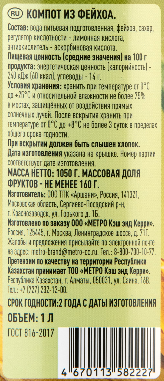 Fine Life Компот с фейхоа, 1л x 6 шт - не самый распространенный фрукт, поэтому компот из него может стать отличным вариантом для тех, кто хочет попробовать что-то необычное. Фейхоа богата витаминами(особенно витамином С), что делает компот полезным для иммунной системы и общего здоровья.