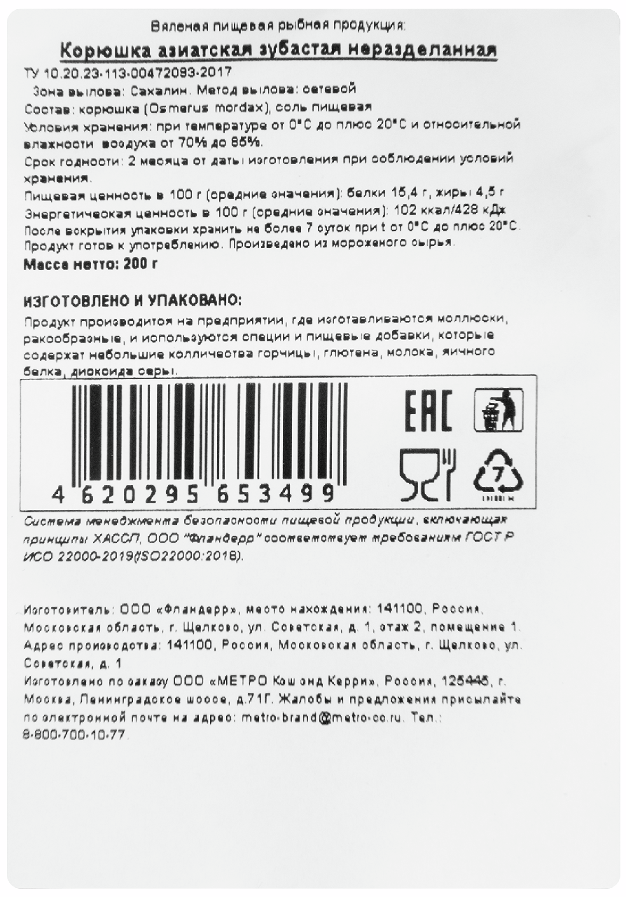Корюшка, соль поваренная пищевая, консервант бензоат натрия.