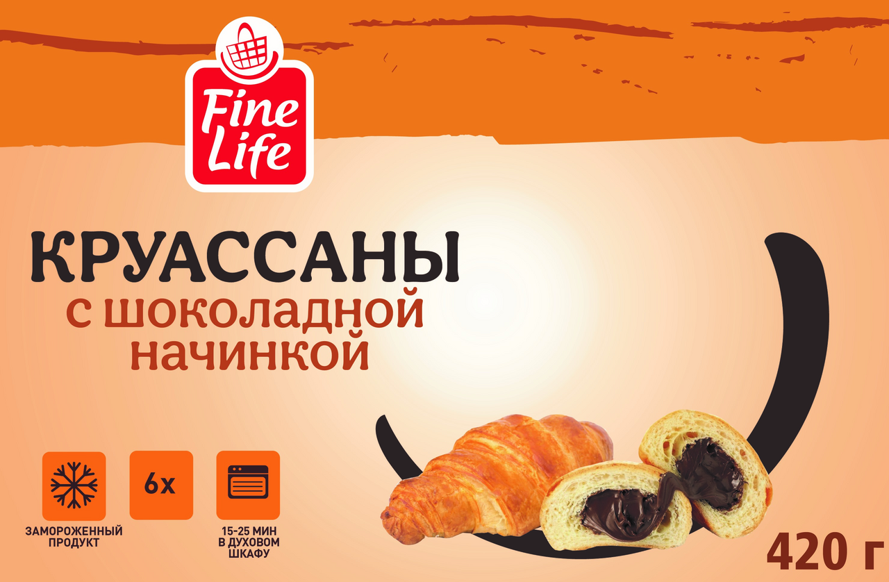 Fine Life Круассан шоколадная начинка замороженный (70г x 6шт), 420г