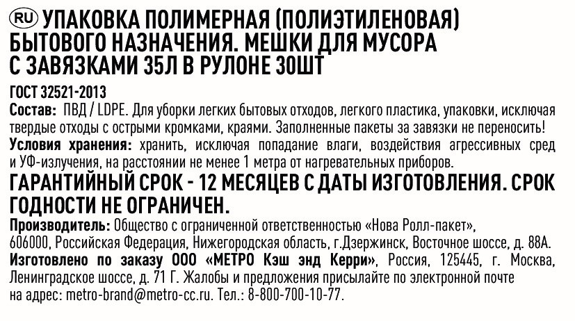 Прочные мешки объемом 30 литров с завязками изготовлены из полиэтилена, который полностью безопасен для человека - при контакте с пищевыми продуктами не выделяются вредные и токсичные вещества.Объем 30 литров удобен для частой замены - подходит для мусорных ведер в ванной, офисах, детских комнатах или небольших кафе. Удобные завязки позволяют плотно закрыть мешок одним движением, избегая просыпания и распространения запахов. Плотный материал предотвращает просачивание жидкостей, сохраняя чистоту контейнеров и мусорных ведер. Мешки способны выдерживать вес до 10кг, что позволяет им стать идеальным помощником в ежедневной уборке.