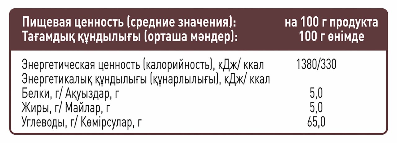 Мука пшеничная хлебопекарная 1 сорт, инвертный сироп (сахар, вода питьевая, регуляторы кислотности кислота лимонная, гидрокарбонат натрия), сахар, масло растительное подсолнечное, молоко сухое, разрыхлители карбонат аммония, гидрокарбонат натрия, краситель пищевой сахарный колер III, пищевое волокно пшеничное, комплексная пищевая добавка (крахмал кукурузный, эмульгатор E450i, разрыхлитель гидрокарбонат натрия), ароматизатор пищевой Шоколад, консервант сорбиновая кислота.