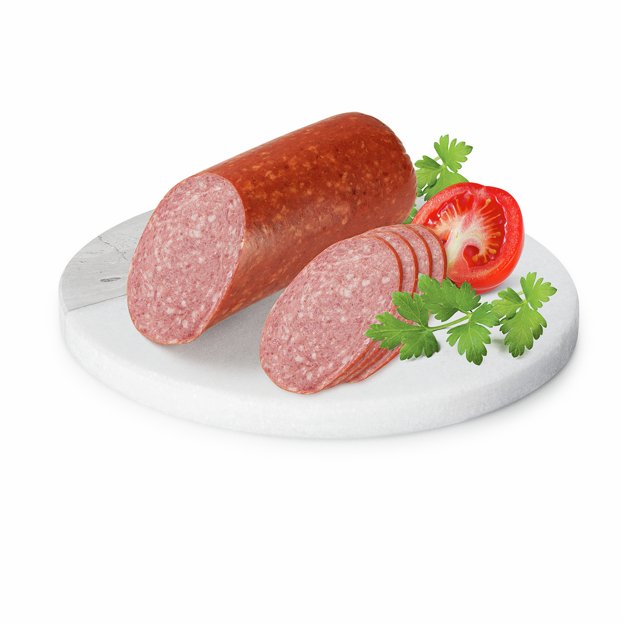 Классический для варёно-копчёного сервелата и любимый многими мелкозернистый рисунок среза.Сбалансированное содержание соли и специй придаёт сервелату насыщенный пикантный вкус.Он идеально подходит для приготовления бутербродов, закусок, а также выделяется своей традиционной рецептурой,что делает его привлекательным выбором для ценителей классических мясных изделий.