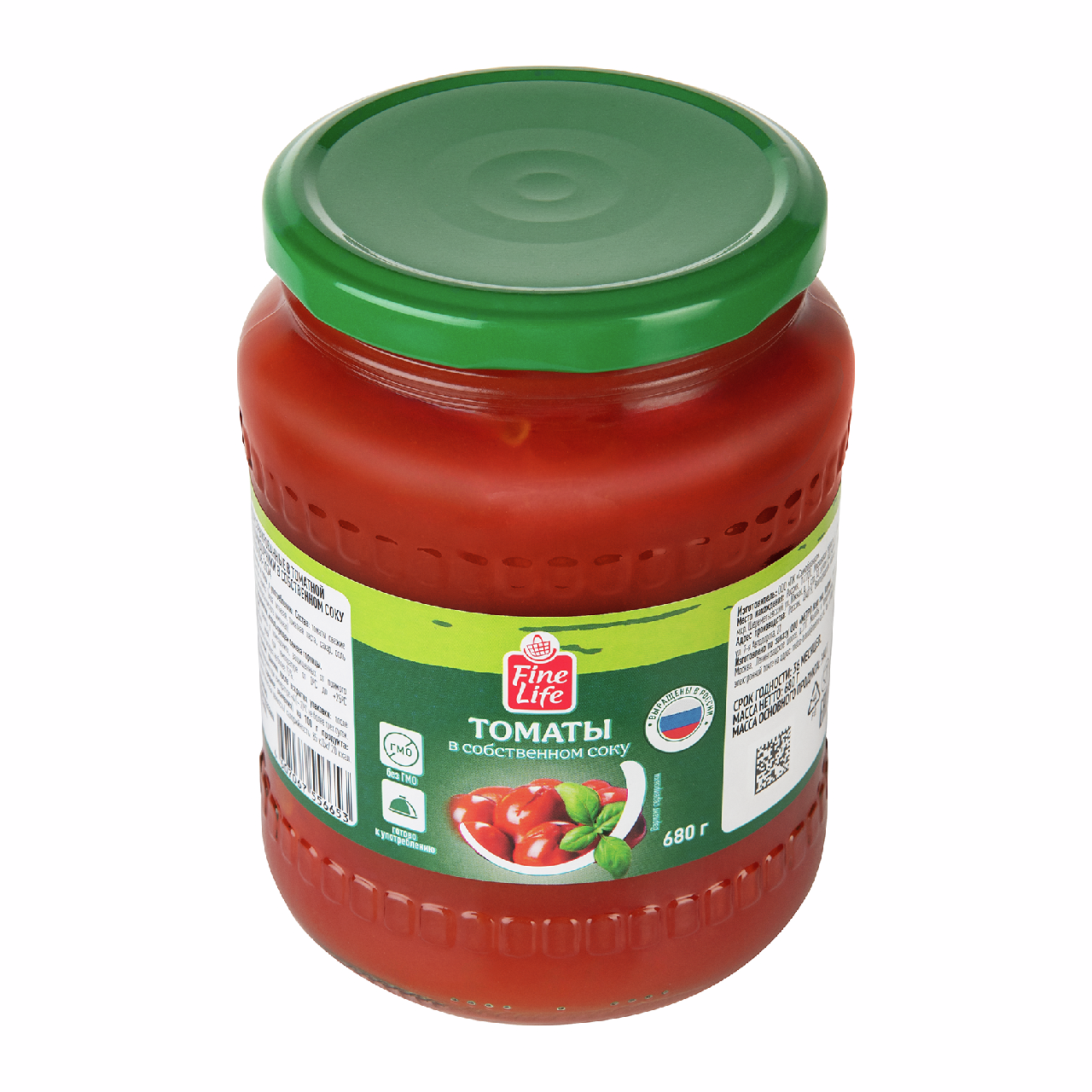 Помидорчики в собственном соку Fine Life - высококачественный натуральный продукт. Достаточно взять в руки банку и визуально оценить находящие в ней томаты - аппетитные, одного размера, с равномерной, характерной для вызревших помидоров окраской. Вкус томатов характерный, выраженный , подчеркнут деликатной кислинкой.