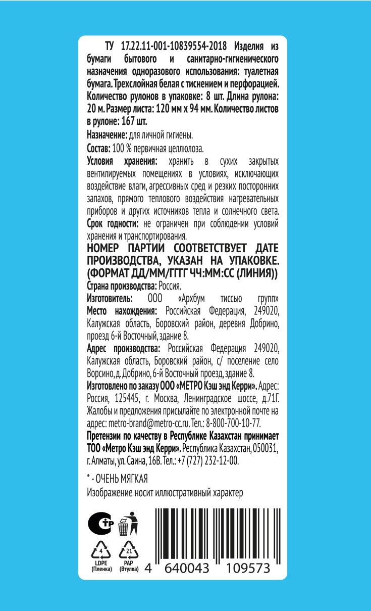 - Тип Туалетная бумага
