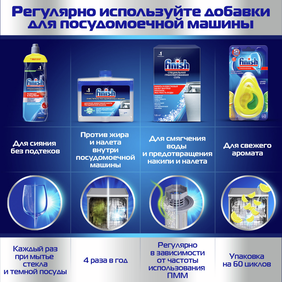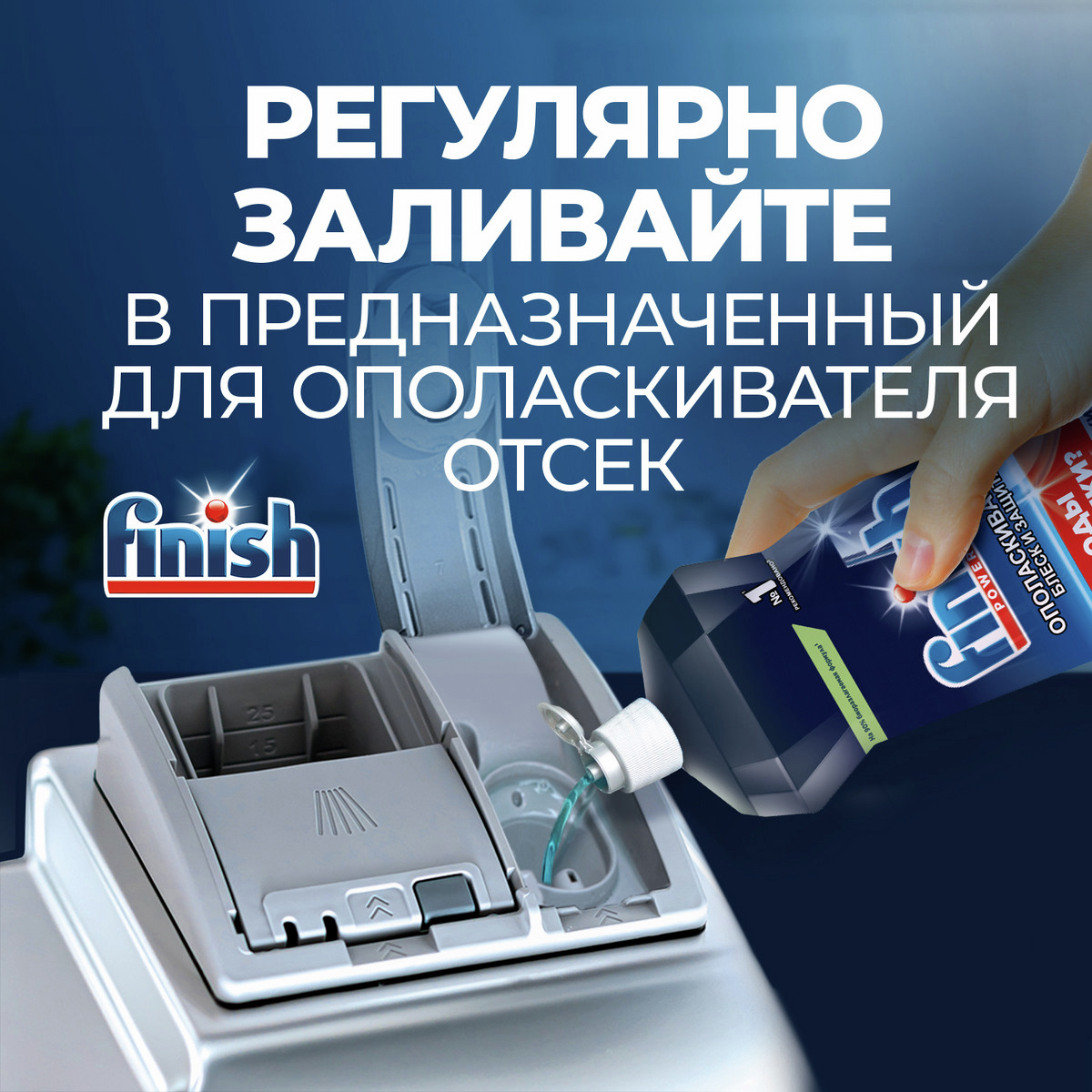Ополаскиватель для посудомоечных машин Finish Shine & Protect, 400мл улучш��ет сушку и придает посуде больше блеска. Средство устраняет следы от капель, известковый налет и подтеки. Регулярно заливайте в предназначенный для ополаскивателя отсек посудомоечной машины.