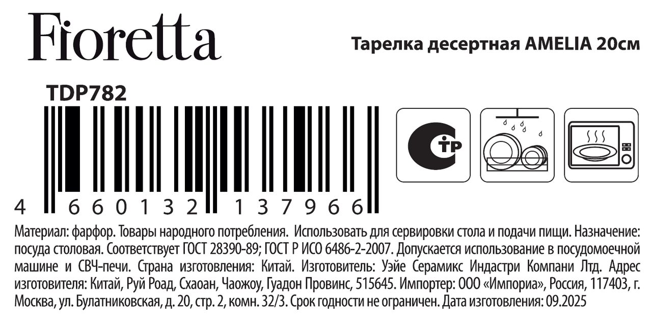 Тарелка десертная Amelia 20см. Коллекция фарфоровой посуды Amelia создана для тех, кто ценит утончённый стиль и гармонию на столе. Чистый белоснежный фарфор, изысканные формы и лёгкий блеск превращают каждый приём пищи в особенный момент. Станет изящным дополнением к сервизу и поможет красиво сервировать стол. Она выполнена из керамики - материала, который высоко ценится во всем мире. Его отличает легкость, долговечность, экологичность. Он хорошо поддерживает температуру, не вступает в реакцию с моющими веществами, не впитывает запахи. Тарелка выполнена в оригинальном, утонченном дизайне, поэтому поможет создать выразительный акцент на праздничном столе.