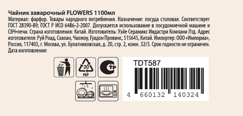 Чайник заварочный Flowers 1100мл украсит вашу кухню, станет незаменимым помощником в заваривании чая и придаст вашему чаепитию особый шарм и уют. Выполненный из качественного фарфора, этот чайник прослужит вам долгие годы и станет настоящим украшением вашего дома.