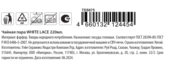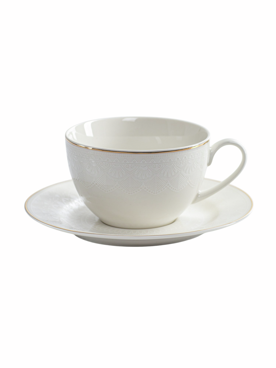 Чайная пара White Lace 220мл. Утончённые ажурные узоры на чайной паре делают её не только функциональной, но и очень красивой. Чайная пара с утончёнными ажурными узорами - это изысканный и стильный аксессуар для настоящих ценителей. Станет прекрасным дополнением к любому интерьеру и создаст атмосферу уюта и тепла во время чаепития.