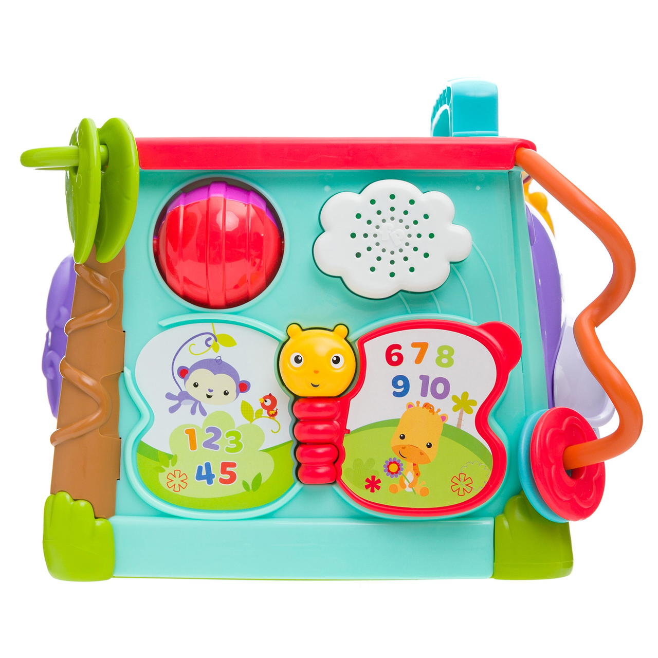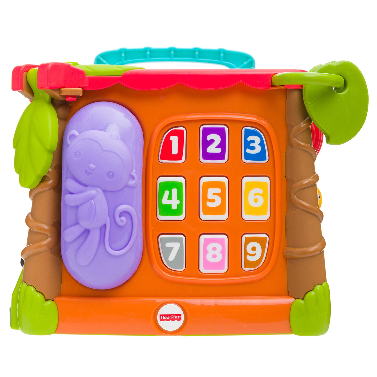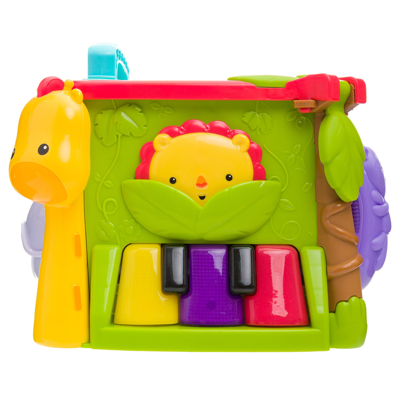 Fisher-Price Большой музыкальный игровой куб GHT89С этим набором от Fisher-Price вы сможете развить базовые навыки вашего малыша: моторику, зрительную координацию, сенсорику, причинно-следственные связи. Ребенок научится отбирать верные фигурки, чтобы вложить их в отверстия в верхней части куба. А потом откроет рот бегемота на одной из сторон куба, чтобы вложенные фигурки высыпались обратно! Нажатие на кнопки клавиатуры поможет учить ��вета и цифры, а книга-бабочка расскажет алфавит или подсчитает песенки, когда малыш перевернет страницу. Клавиши пианино с подсветкой играют ноты и песенки при нажатии, а игрушка-Лев забавными звуками вознаградит ребенка за прикосновение. Игровой куб удобно брать с собой на прогулку. Пусть ваш малыш развивается, играя!