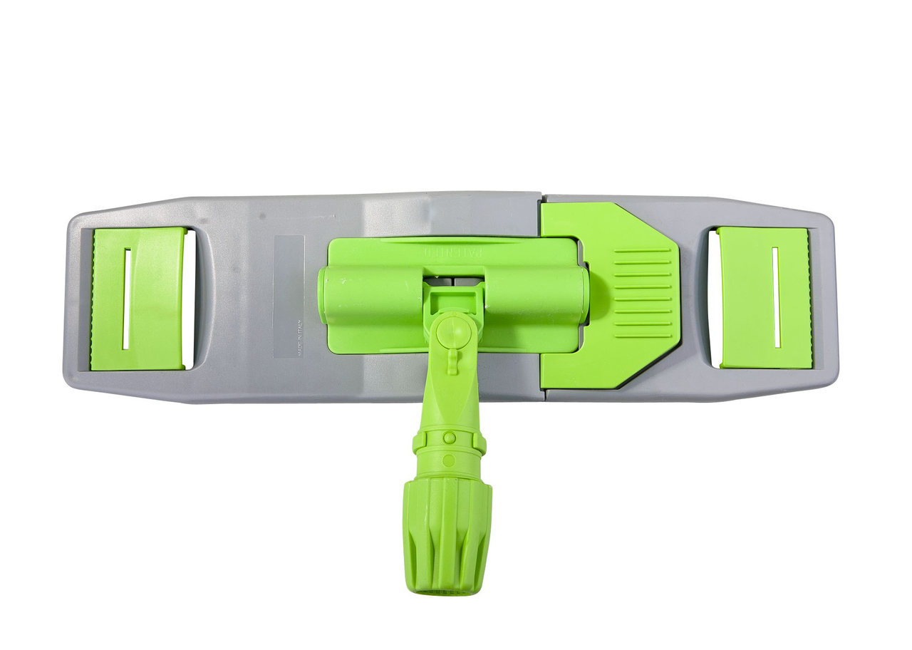 Флаундер складной для швабры Euromop. Размер: 40 х 11 см. Материал: пластик. Пластиковый держатель (флаундер) с защёлкой Sani-Simple. Предназначен для плоского мопа с ‘’карманами’’, размером 40 х 13 см. Для влажной уборки и дезинфекции. Основание флаундера и шарнирный механизм с креплением к ручке изготовлены из пластика. Основа флаундера из ударопрочного пластика хорошо держит форму мопа. Шарнирное соединение флаундера с ручкой обеспечивает постоянное прижатие мопа по всей его площади к полу (независимо от направления движения ручки). Обеспечивает эффективную уборку с высокой производительностью. Срок годности не ограничен.