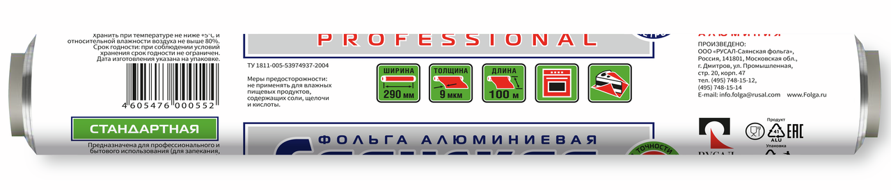 Фольга Саянская Professional алюминиевая 9мкм, 29см х 100м