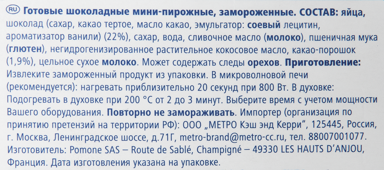 Фондан шоколадный METRO Chef мини, 32 х 30 г представляет собой набор вкусных и очень нежных пирожных с начинкой. Они прекрасно подходят как для обычного чаепития, так и для праздничного стола. Их также можно включить в меню любого кафе или ресторана. Секрет популярности этих пирожных в их оригинальном вкусе. В воздушное бисквитное тесто добавляется какао, благодаря чему оно становится шоколадным. Начинка представляет собой карамельный, слегка подсоленный крем. Такое нестандартное сочетание дает отличный результат: пикантные мини-фонданы необычайно вкусные и пользуются спросом как у детей, так и у взрослых. Пирожные продаются в герметичной упаковке. В каждой из них 12 штук. Хранить картонную коробку следует в морозильнике при температуре -18С. Это очень удобно: достаточно достать упаковку и разогреть в микроволновой печи, и уже готов вкусный завтрак или десерт к вечернему чаепитию. Наличие такой упаковки выручит в случае внезапного прихода гостей. Всего за пару минут можно накрыть стол и угостить этим вкуснейшим лакомством.