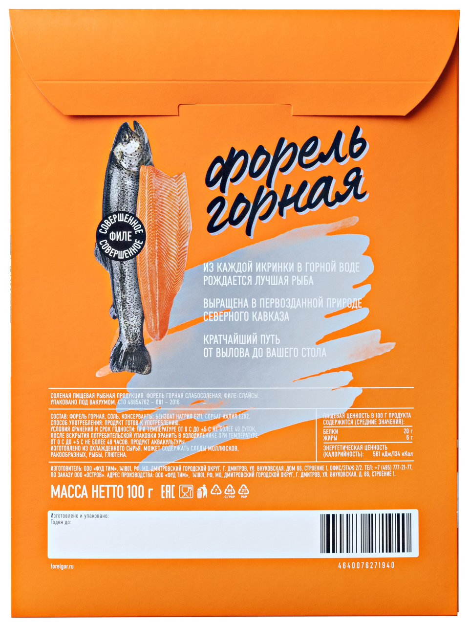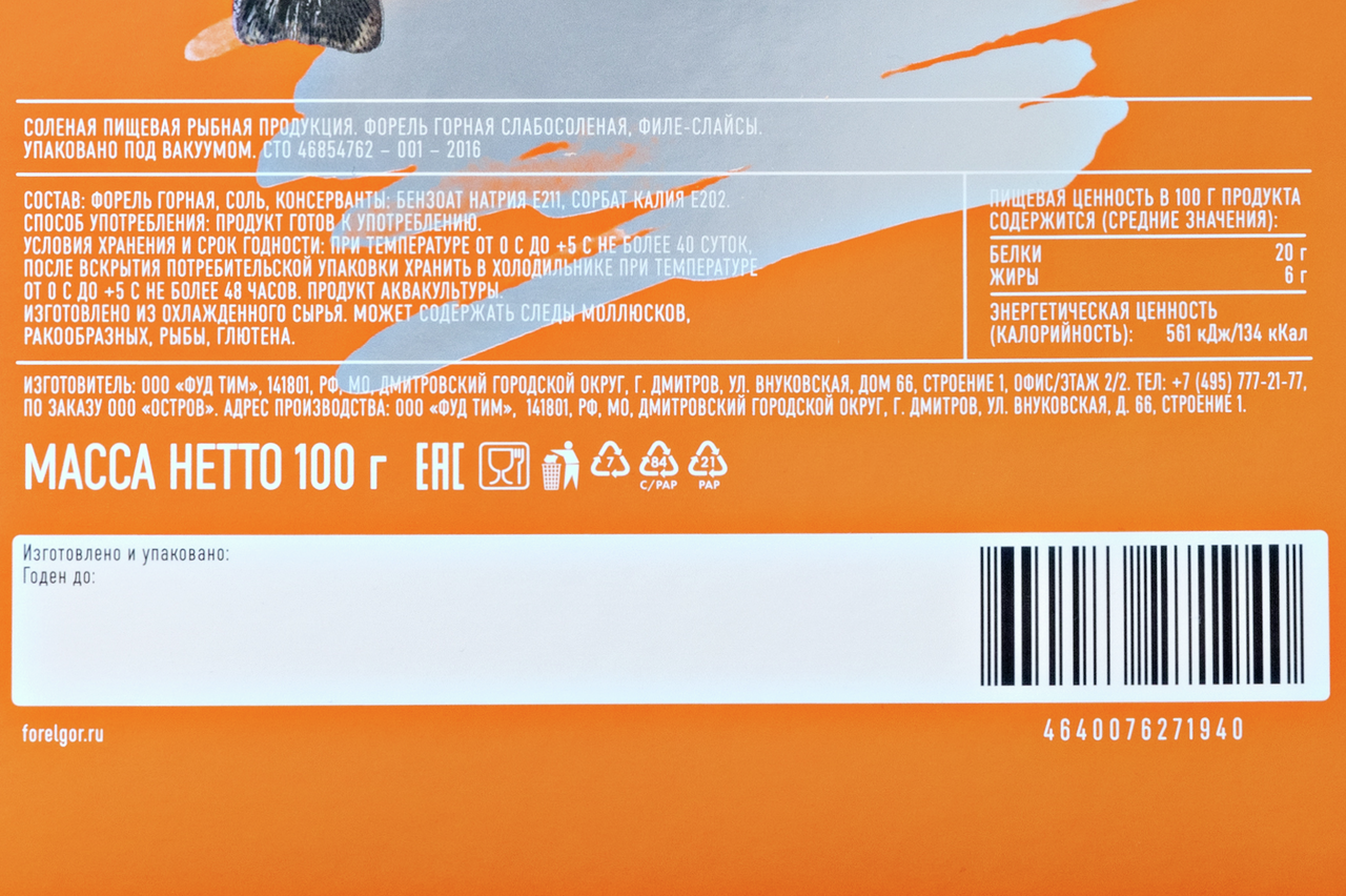 Форель, соль, консерванты - бензоат натрия Е211, сорбат калия Е202.