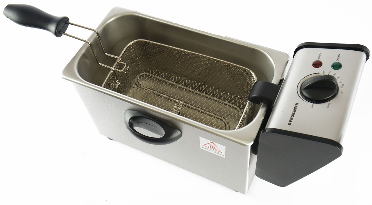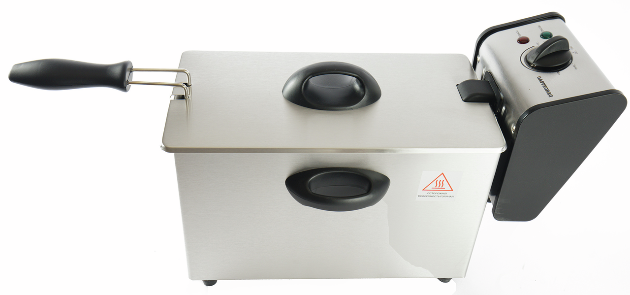 Фритюрница Gastrorag CZG40X — это профессиональное оборудование для кухни кафе, ресторана, торговой точки в развлекательном центре, фудкорте и прочих заведениях общественного питания. Устройство предназначено для приготовления блюд во фритюре в больших объемах. С помощью фритюрницы можно готовить такие популярные блюда, как картофель фри, гренки, жареный сыр или баварские колбаски в масле и прочие блюда. Продукты-полуфабрикаты в специальной металлической корзине опускаются в емкость с горячим маслом, в котором и подвергаются термической обработке до финальной готовности. Фритюрница для настольного типа размещения оснащена большим котлом объемом в 4 литра и надежной крышкой, которая препятствует разбрызгиванию масла в процессе готовки. Корпус устройства изготовлен из практичной нержавеющей стали, а его компактные габариты 230 х 405 х 279 мм отлично подходят для оснащения любой промышленной кухни, занимая немного места на рабочей поверхности стола. Фритюрница подключается к сети с напряжением в 220 В, нагревательный элемент имеет мощность 2 кВт.