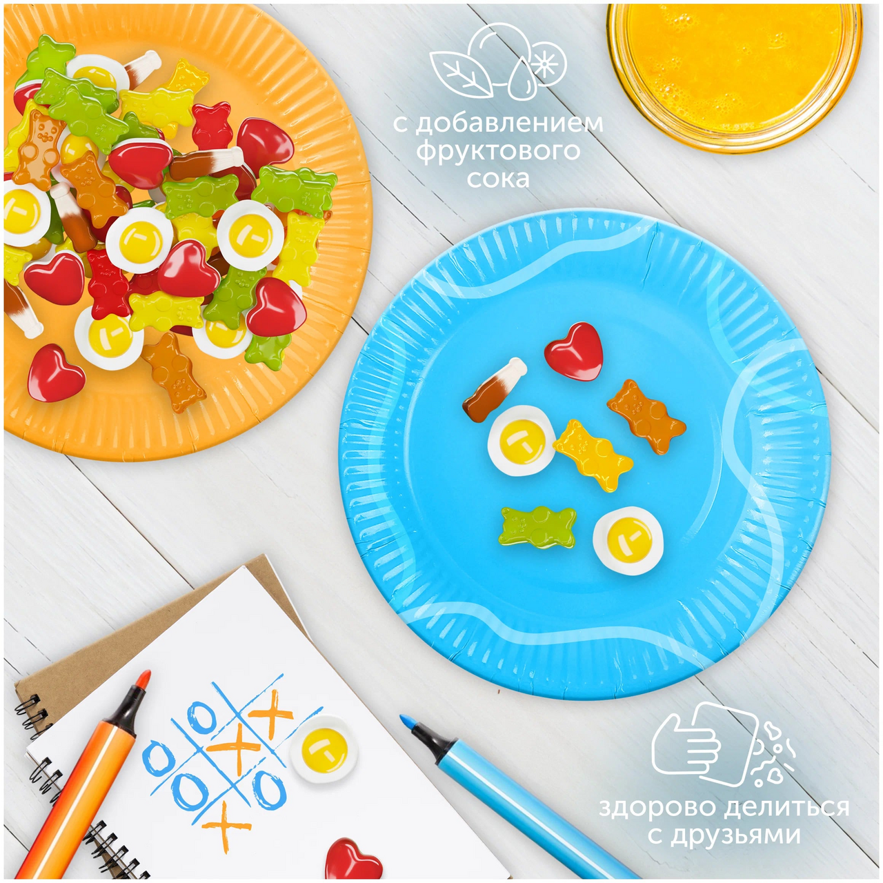 Глюкозный сироп (из пшеницы), сахар, гидрогенизированное растительное масло, соки из фруктов и ягод (банановый, яблочный, ананасовый, апельсиновый, клубничный) (3%), регулятор кислотности (лимонная кислота), желатин, влагоудерживающий агент (глицерин), натуральные ароматизаторы, загустители (гуммиарабик, декстрины), концентрированные соки (бузина, черная морковь), краситель (экстракт паприки), концентраты (сафлор, спирулина).