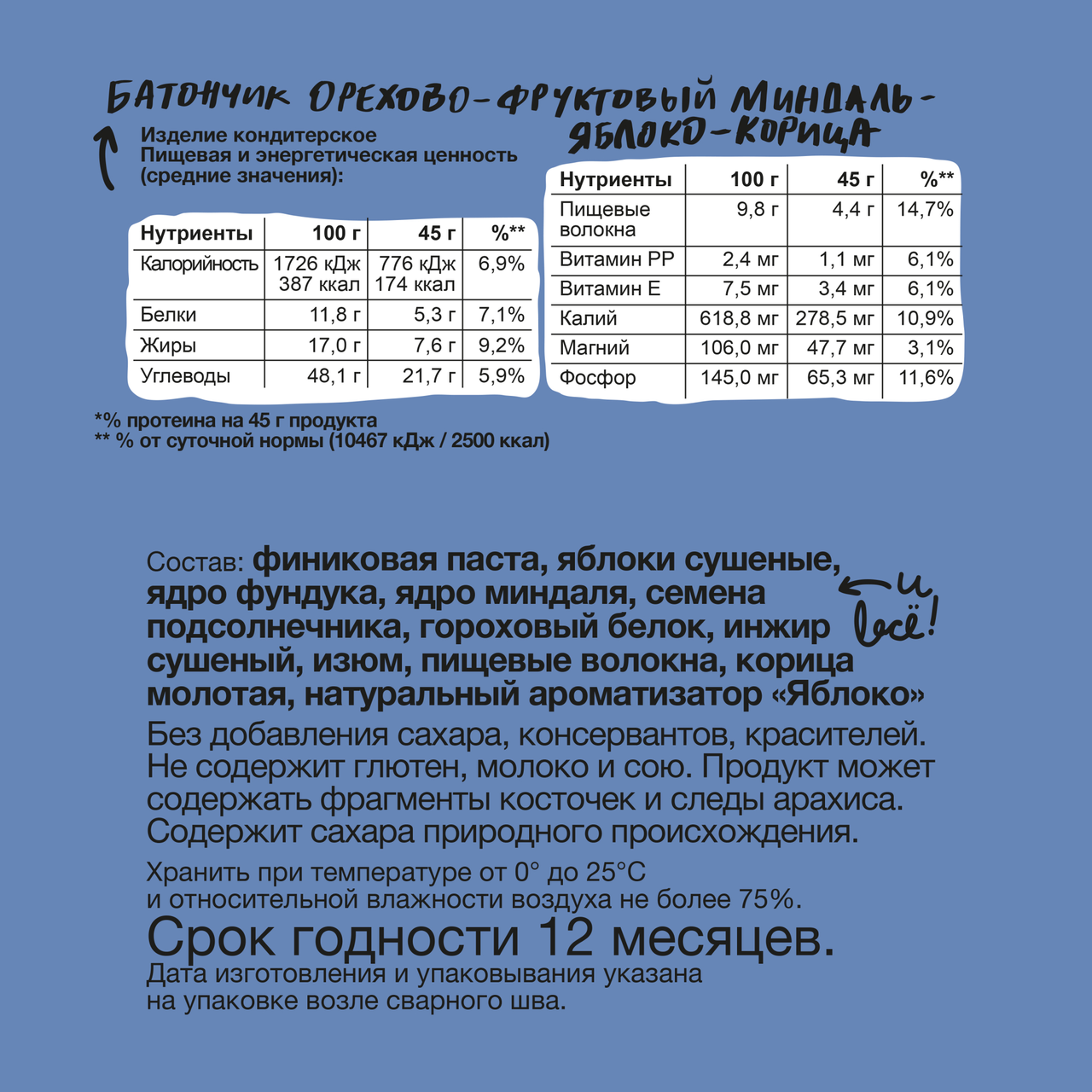Батончик фруктово-ореховый Take A Bite Интеллект Миндаль-Яблоко-Корица, 45г