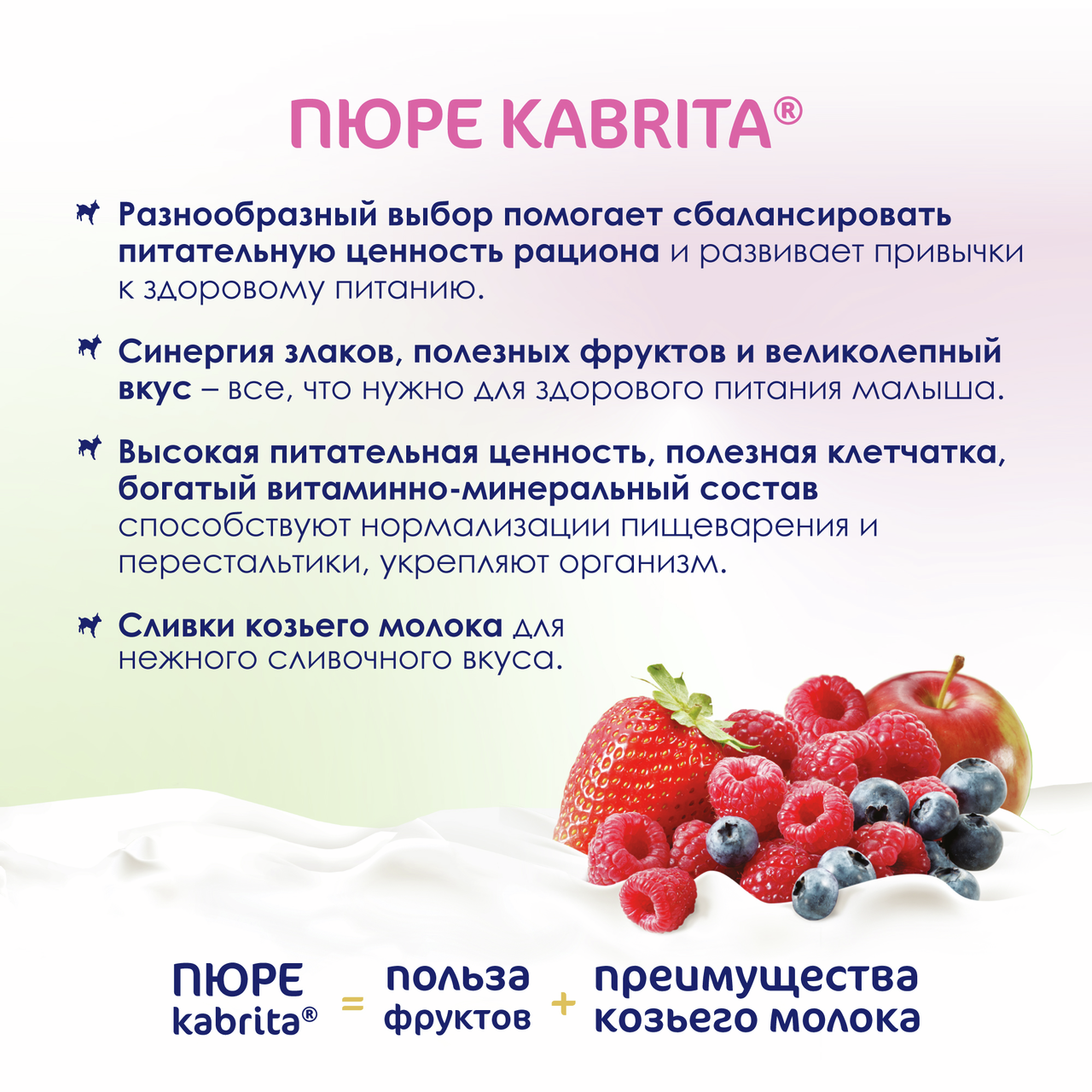 Пюре фруктовое детское Kabrita Лесные ягоды, яблоко и козьи сливки с 6 месяцев, 100г