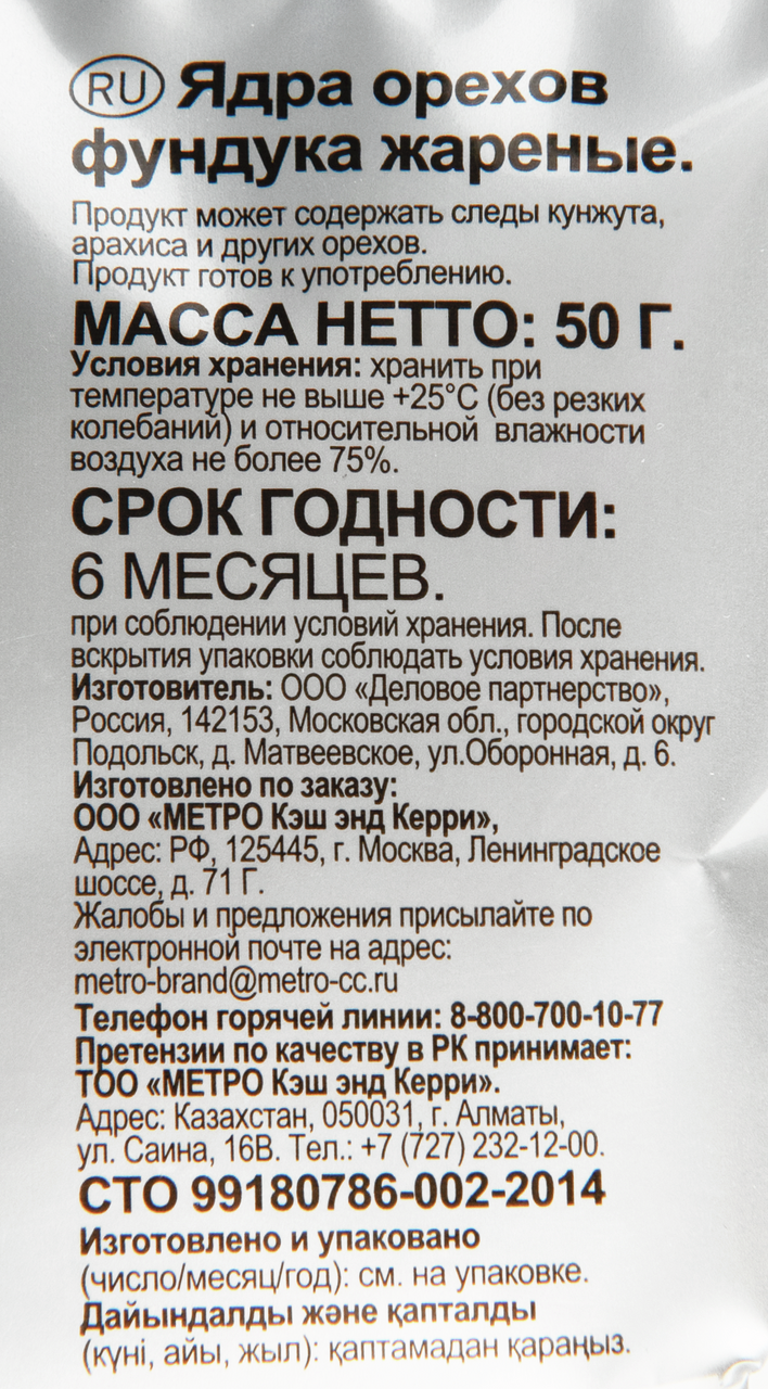 Ядра орехов фундука жареные. Продукт может содержать следы кунжута, арахиса и других орехов.