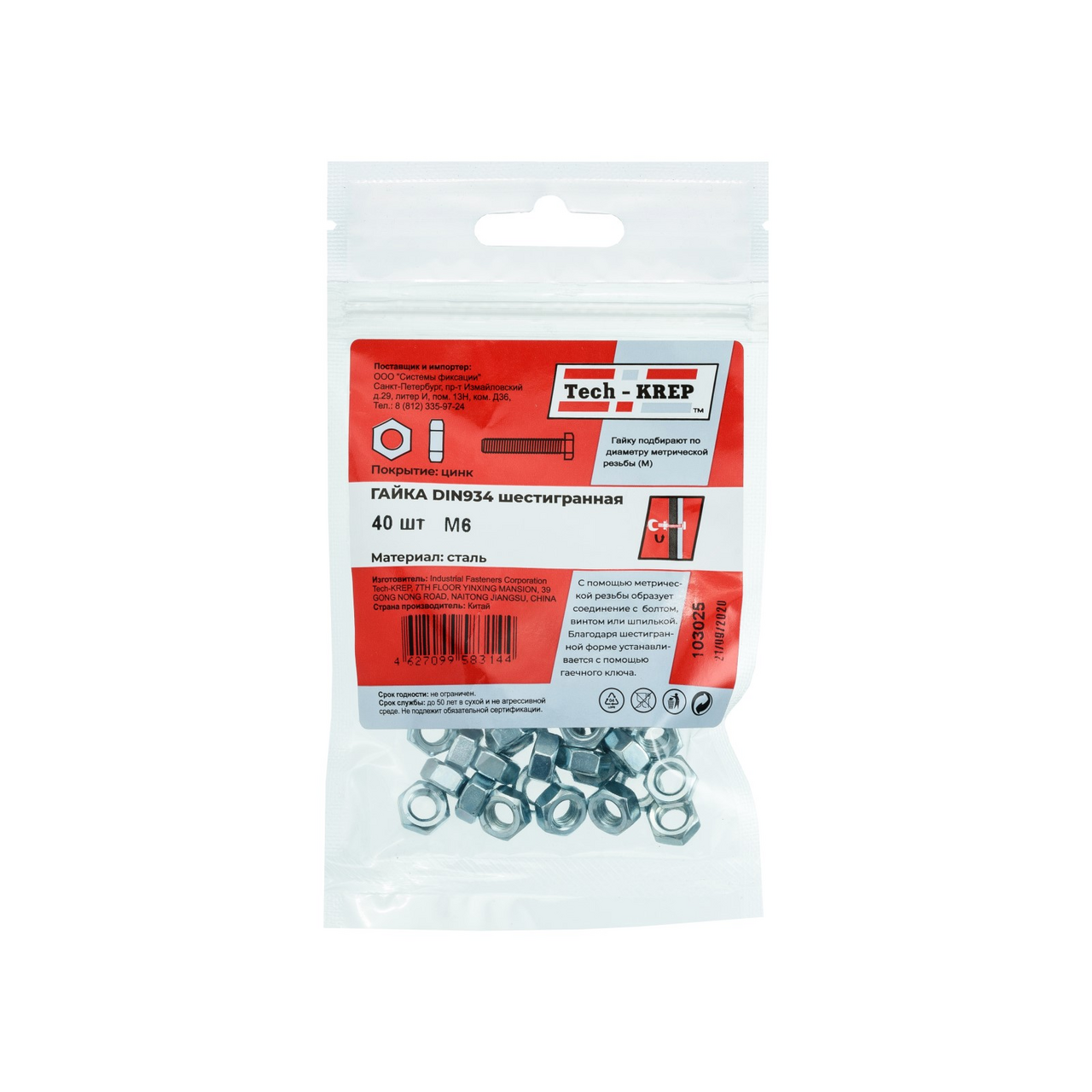 Гайка Din934 M6 TECH-KREP, 40шт