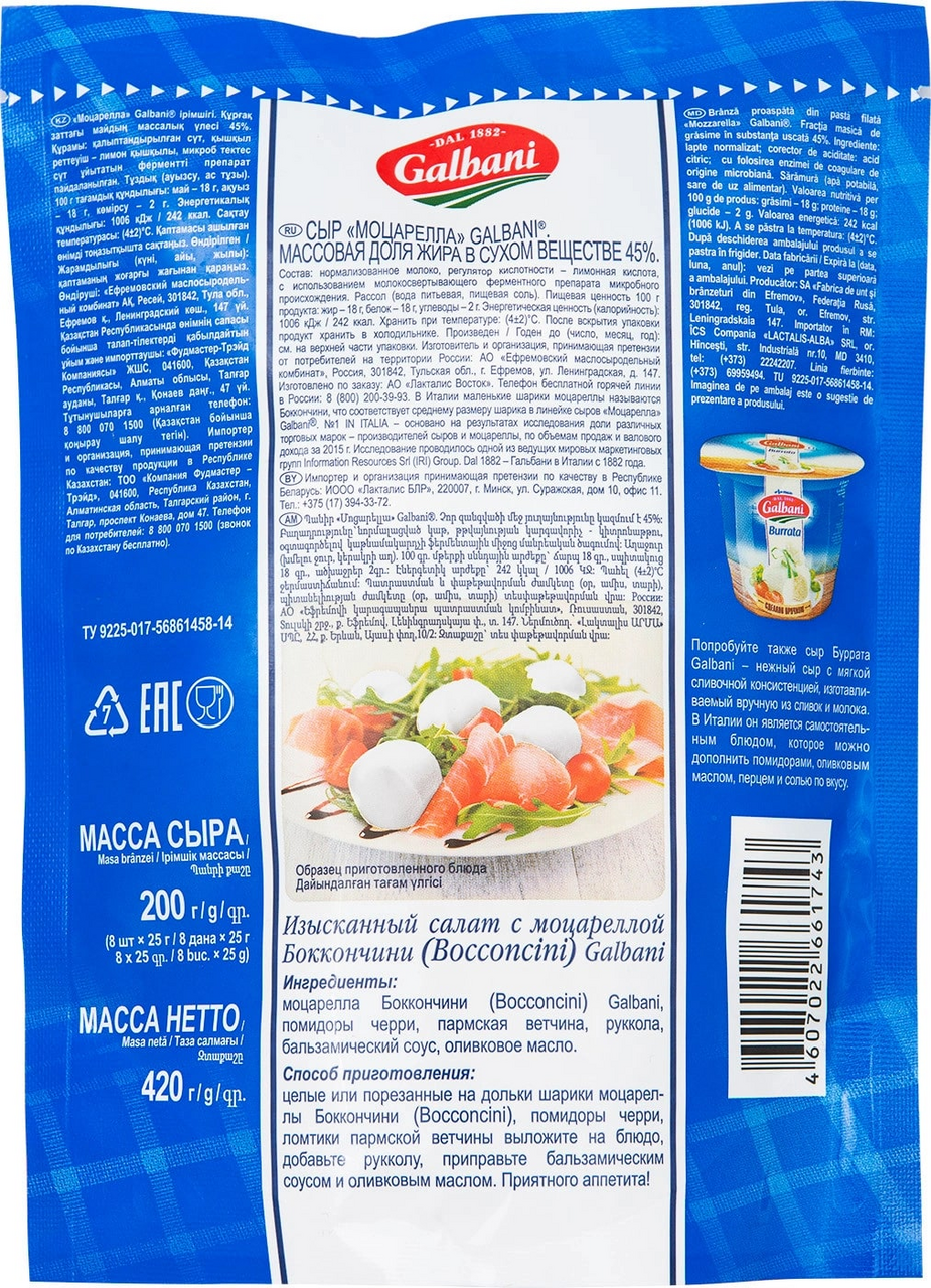 Сыр Galbani Боккончини Моцарелла 8 шариков 45%, 200г