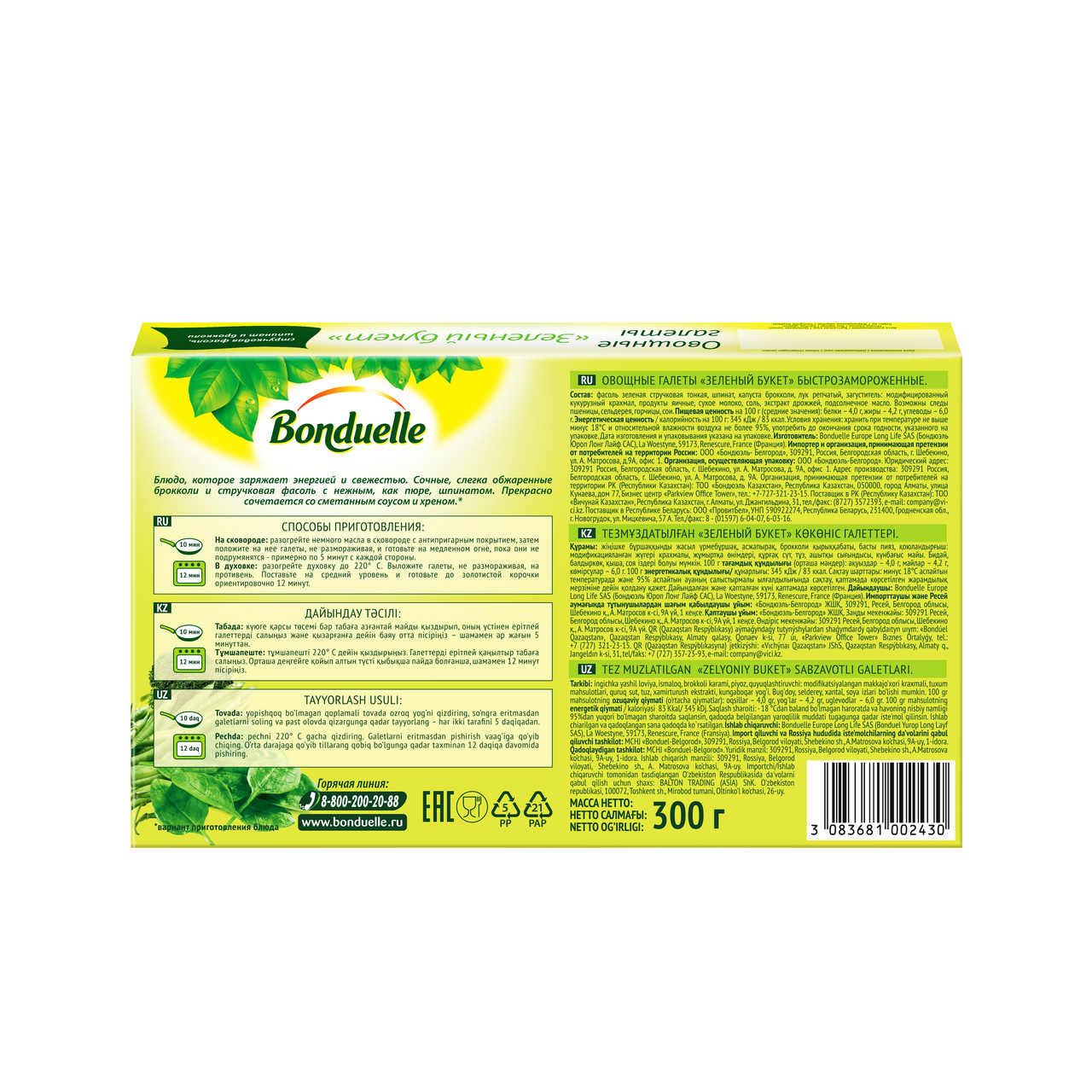 Овощные галеты Бондюэль Зеленый букет быстрозамороженные, 300г