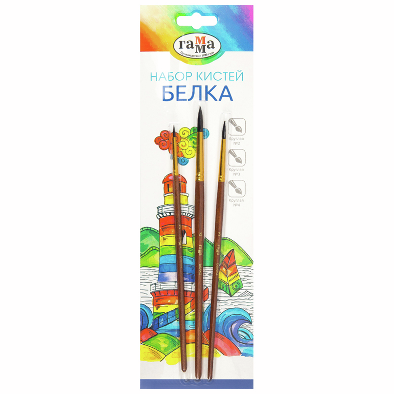 Набор кистей Гамма белка круглые № 2, 3, 4, 3 шт