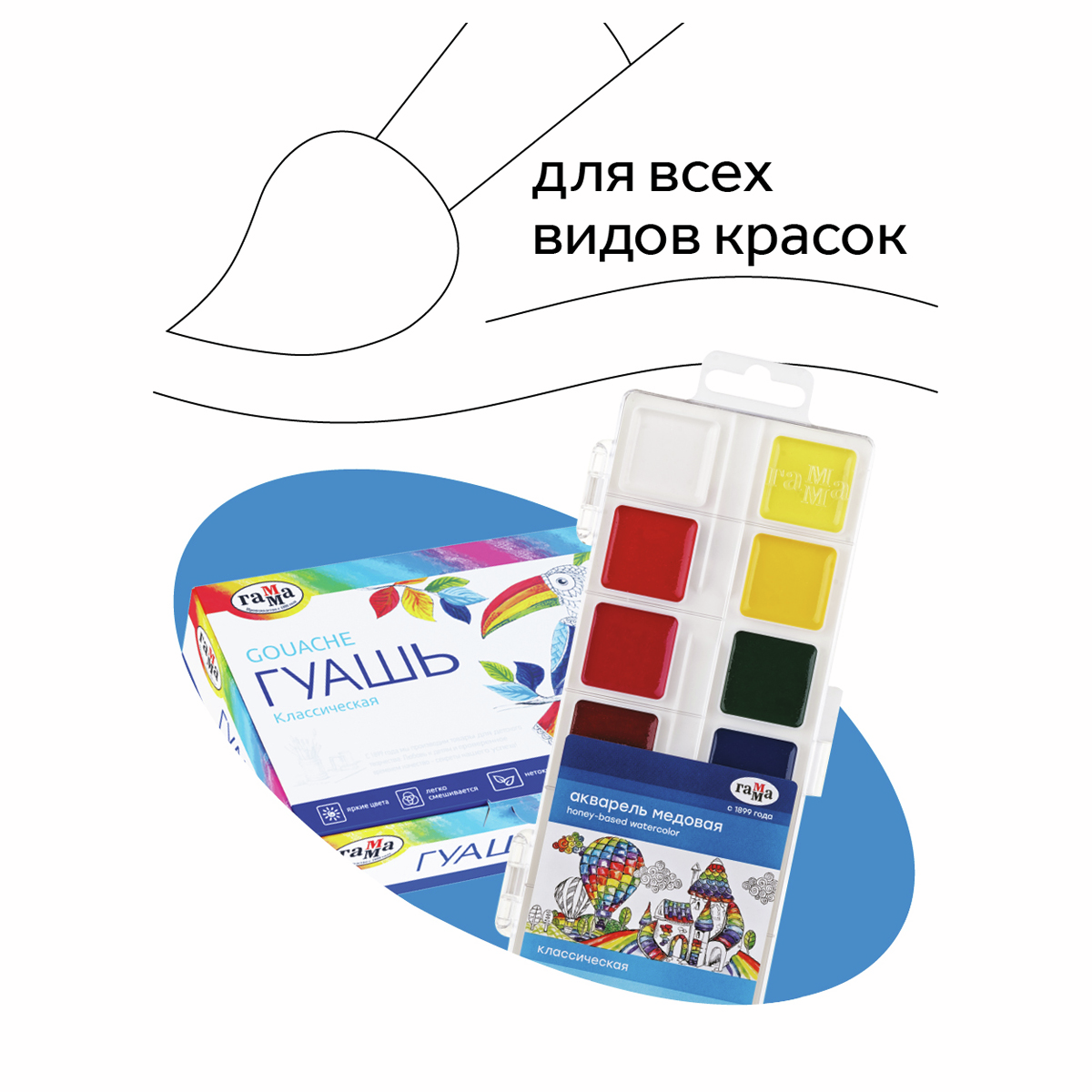 Кисти Гамма Пони 1 2 3 4 5, 5 шт подойдут для начинающих художников и тех, кто любит заниматься творчеством. Они выполнены из натурального волоса пони, поэтому отличаются средней степенью жесткости и хорошо сохраняют свою форму. Ворс не осыпается и не деформируется. Он отлично держит влагу и пигмент, поэтому изделие станет незаменимым при использовании водорастворимых красок: акварели, гуаши, акрила. Инструмент удобно ложится в руку за счет ручки оптимальной длины и толщины. В набор входит пять кистей различного размера. За счет этого ими можно как закрашивать большие площади, так и прорисовывать мелкие детали.